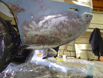from the exterior, exposing a thin layer of 36 year old bondo and